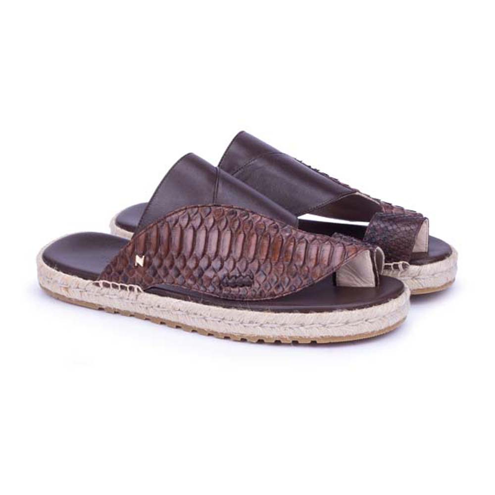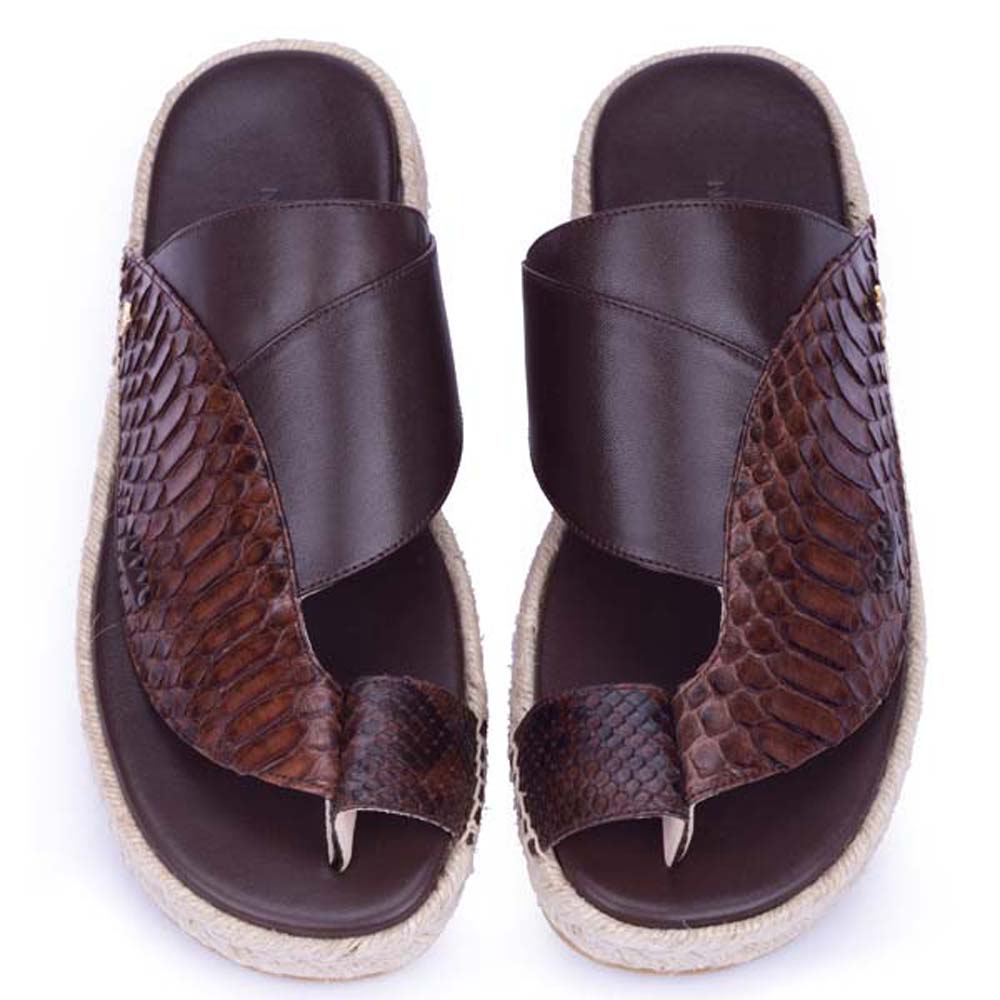 حذاء نقوة ماربيا بني جلد ثعبان بني