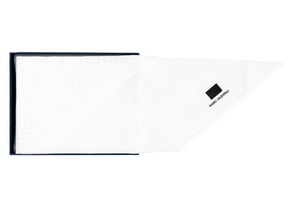 شماغ ماريو فالنتينو الأبيض المميز و الأنيق بالختم الأسود مصنوع من القطن الصافي الذي تم صناعته